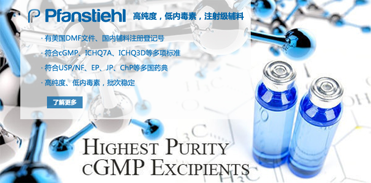 “熱烈祝賀Pfanstiehl的注射級甘氨酸Glycine(G-140)喜獲CDE登記號F20250000403, 這是Pfanstiehl產品獲得的第18個CDE登記號!”甘氨酸在醫藥輔料制劑中應用廣泛,, 可作為緩沖劑,增溶劑,穩定劑等,具有諸多優勢。Pfanstiehl秉承一貫高品質理念,為滿足全球生物制藥行業對于高品質甘氨酸的需求,隆重推出的注射級甘氨酸Glycine (G-140), 具有超高純度,超低內毒素,超低金屬殘留的特點,單獨檢測29種金屬離子,并且新增DNA,RNA,DNA酶,RNA酶和脂肪酶,亞硝酸鹽等多項質量指標的檢測,符合多國藥典規定(USP, EP, BP, JPE, ChP),可用于生物治療性藥物和疫苗的生產。產品信息:· 產品名稱:Glycine, High Purity, Low Endotoxin, Low Metals, USP, EP, BP, JPE, ChP (G-140)· 中文名稱:甘氨酸· 分子式:C2H5NO2· 分子量:75.07 g / mol· CAS號:56-40-6· 產品貨號:G-140產品特點: · 超高純度,超低內毒素,超低微生物含量,超低金屬雜質殘留· 質量指標新增DNA,RNA,DNA酶,RNA酶,脂肪酶和亞硝酸鹽檢測· 符合多國藥典:USP, EP, BP, JPE, ChP· 符合ICH Q3D標準· 符合GMP標準· 已獲DMF和CDE登記號 產品應用:· 緩沖劑· 穩定劑· 增溶劑如果您對Pfanstiehl注射級別Glycine G-140感興趣,歡迎聯系Pfanstiehl 中國區代理商北京西美杰科技有限公司獲得如下詳細的產品概況說明文件和測試樣品。Pfanstiehl Inc.最新產品系列如下,歡迎聯系北京西美杰科技有限公司獲取100g裝免費樣品。北京西美杰科技有限公司為Pfanstiehl中國代理,為客戶提供完善的技術支持與售后服務。歡迎撥打西美杰客服電話400-050-4006或者登陸網站www_xmjsci_com.king918.com了解更多信息。 更多>